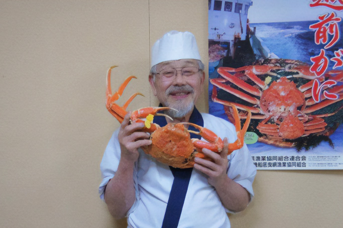 温泉民宿「三国屋」の館主は、三国漁港で顔の利くこの道60年のベテラン仲買人。