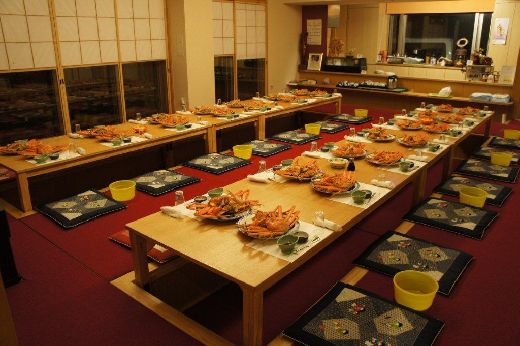 掘りごたつ式広間で、旬のカニを囲み、語らう時間がごちそうです。
